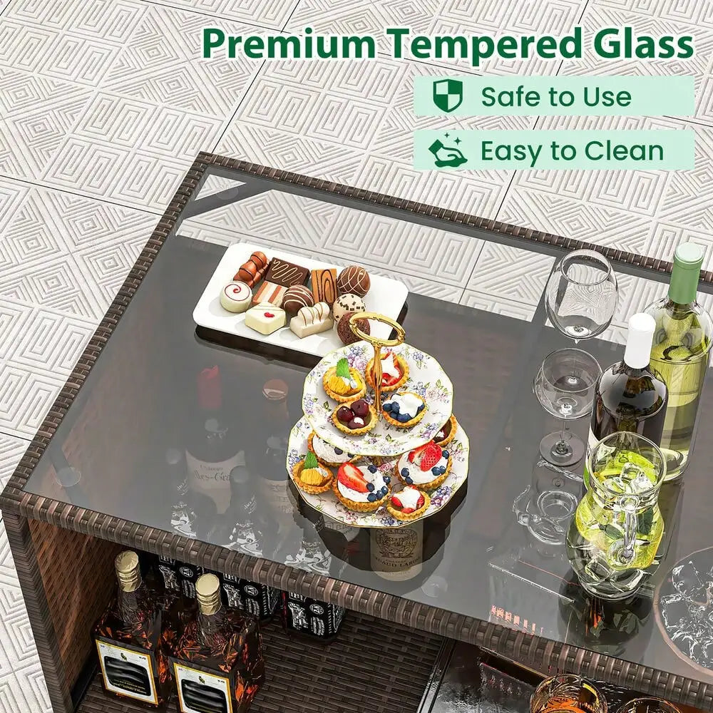 - Durable PE wicker construction resists sun, rain, and fading, giving you a low-maintenance outdoor set that stays vibrant season after season.