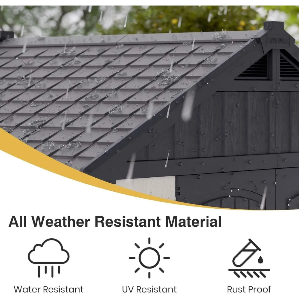 - Generous 8x6 ft footprint fits in most yards and garages, making it easy to organize gardening supplies, seasonal gear, and more.
