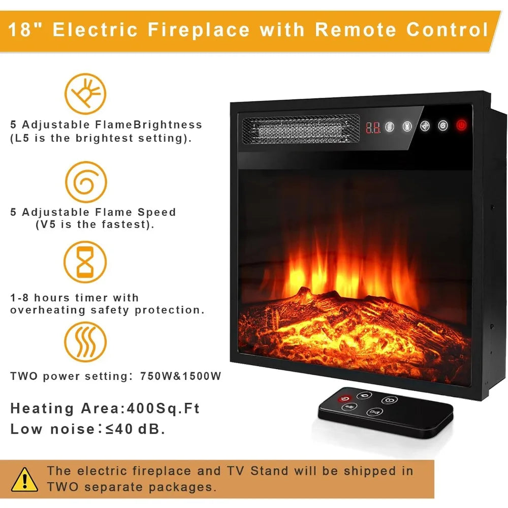 - 18-inch electric fireplace offers 750W/1500W heat options, five dimmer levels, temperature control, timer, and a remote for convenient warmth.