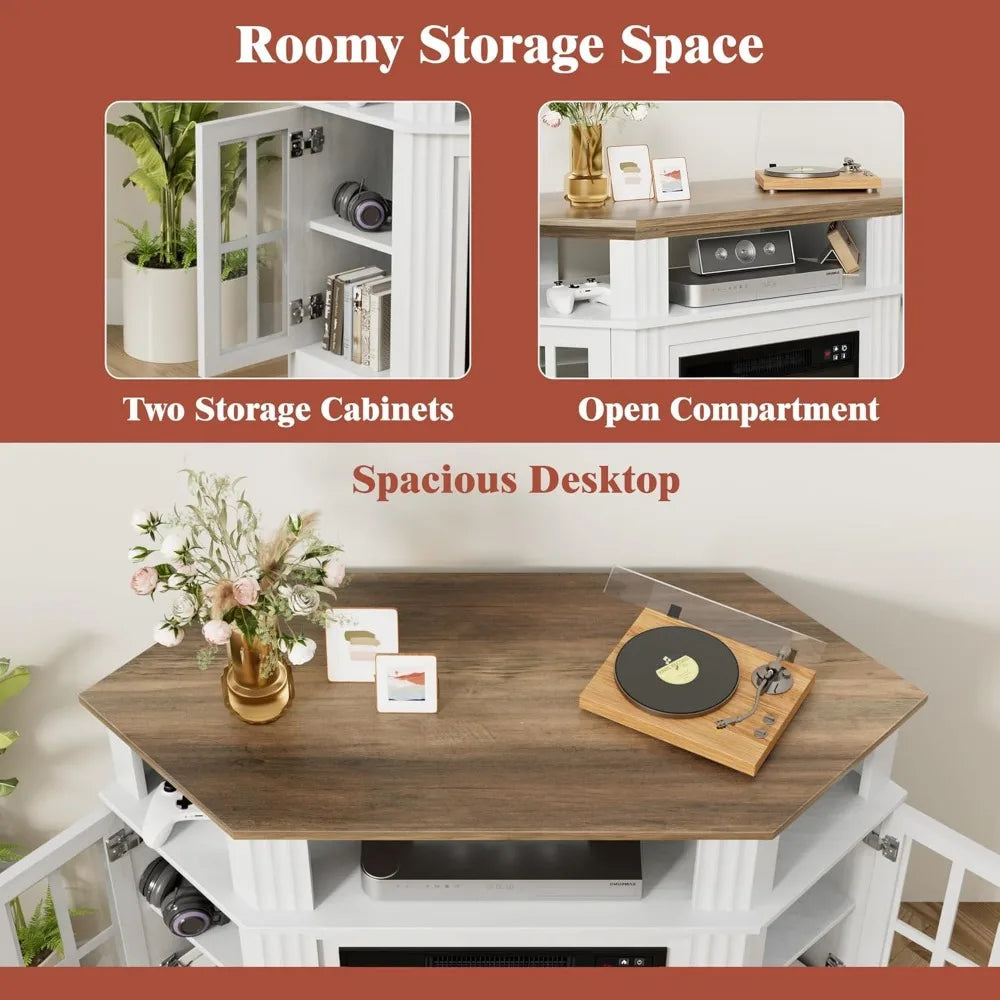 Color Fireplace Corner TV Stand With Electric Fireplace