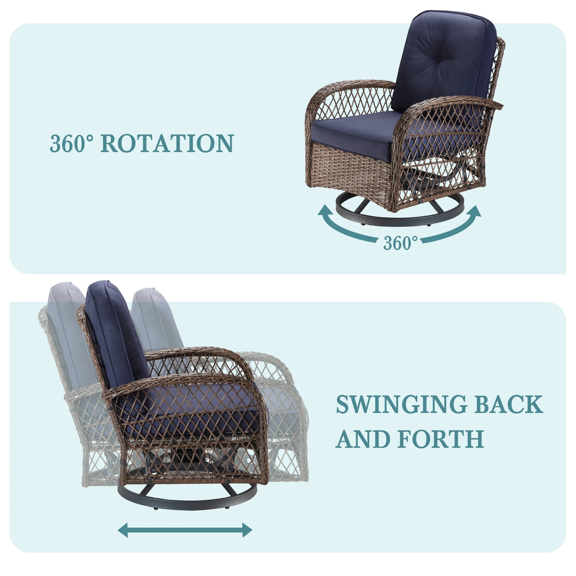 - Two rocking chairs deliver gentle, soothing motion and a durable rattan/wicker finish that withstands sun, rain, and everyday use.