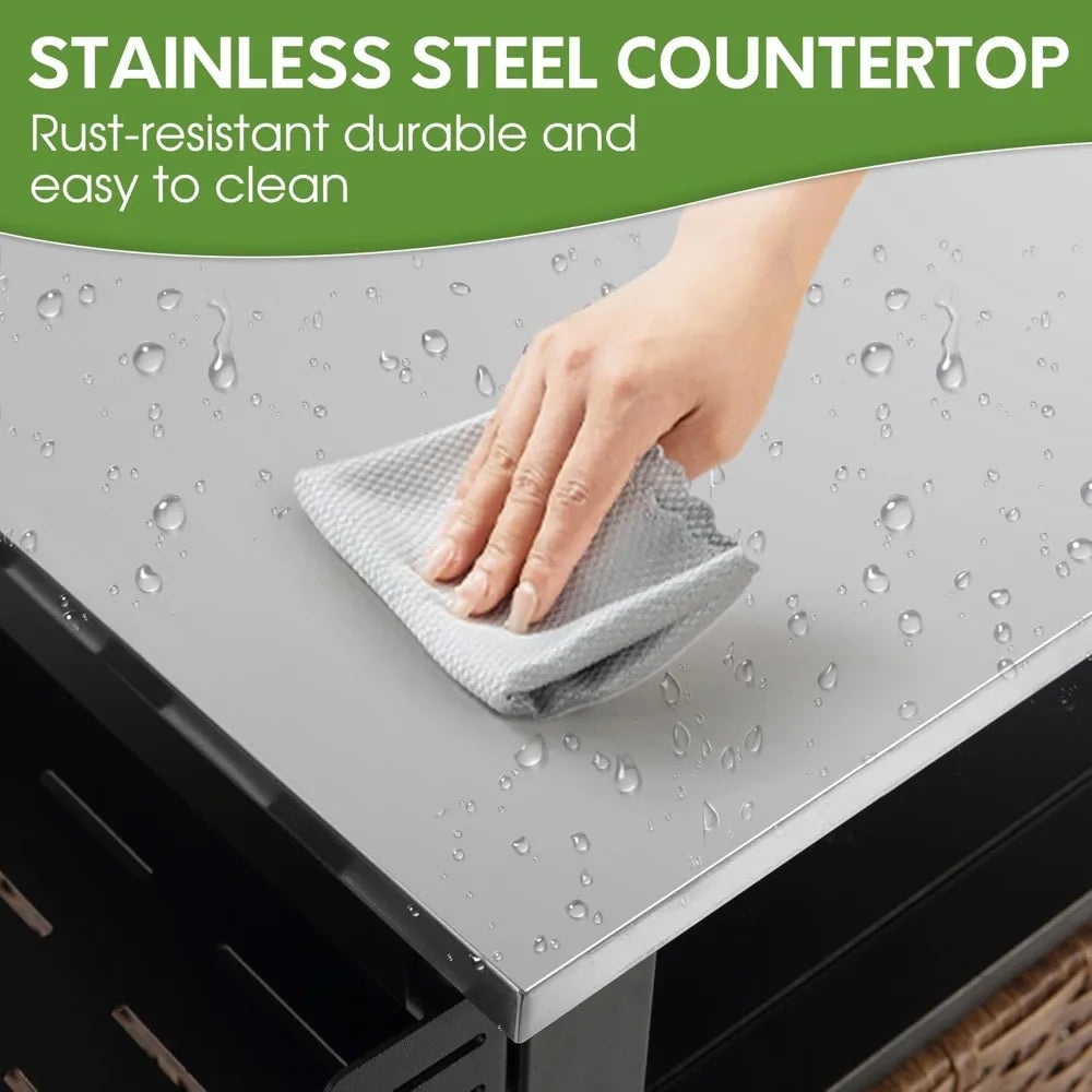 Elevate your outdoor entertaining with the RBXCH Outdoor Kitchen Island Cart Wicker Grill Prep Station, crafted for weather-ready performance and effortless flair.