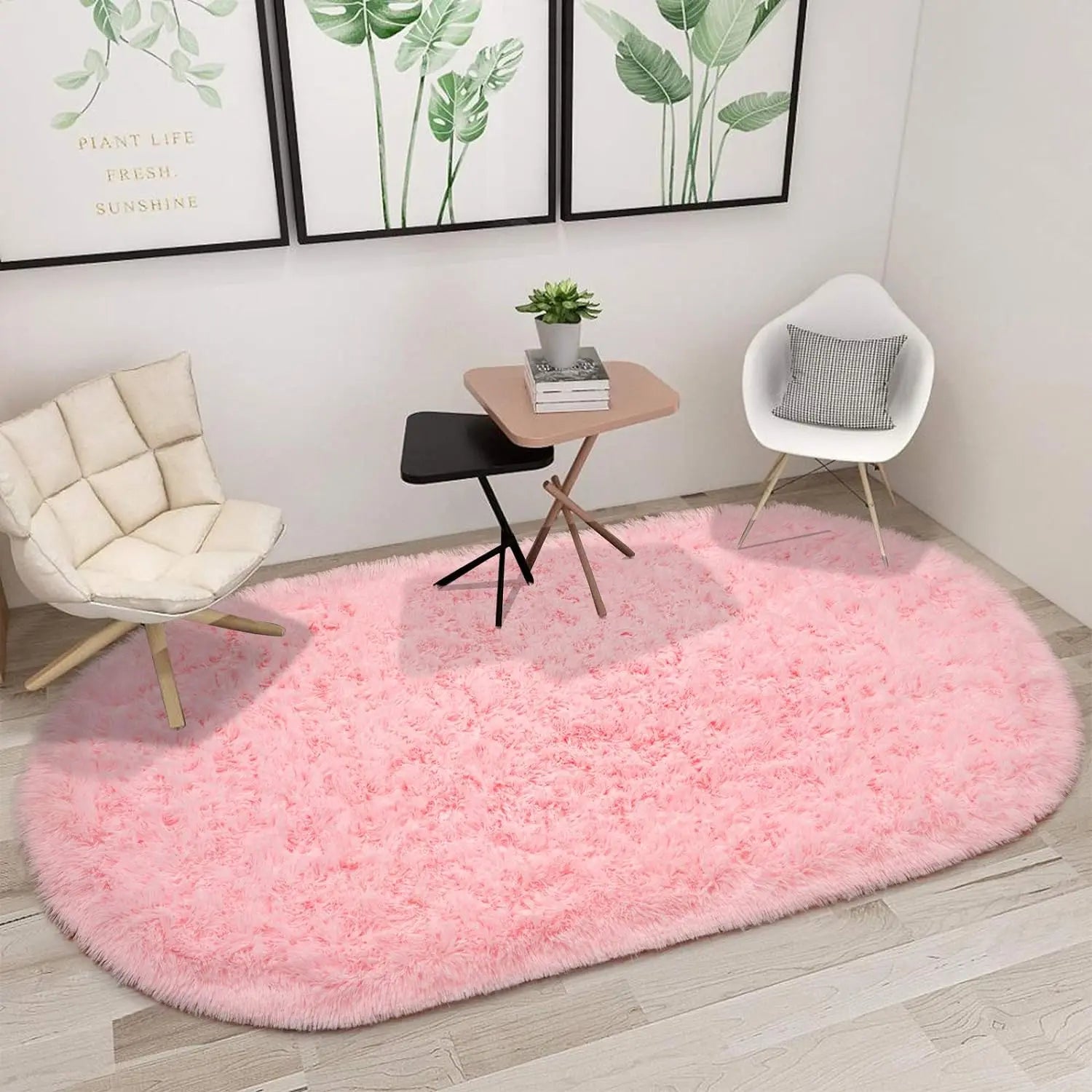 Oval Fluffy Ultra Soft Area Rugs for Bedroom Plush Shaggy Carpet for Kids Room Bedside Nursery Mats, 2.6 x 5.3ft