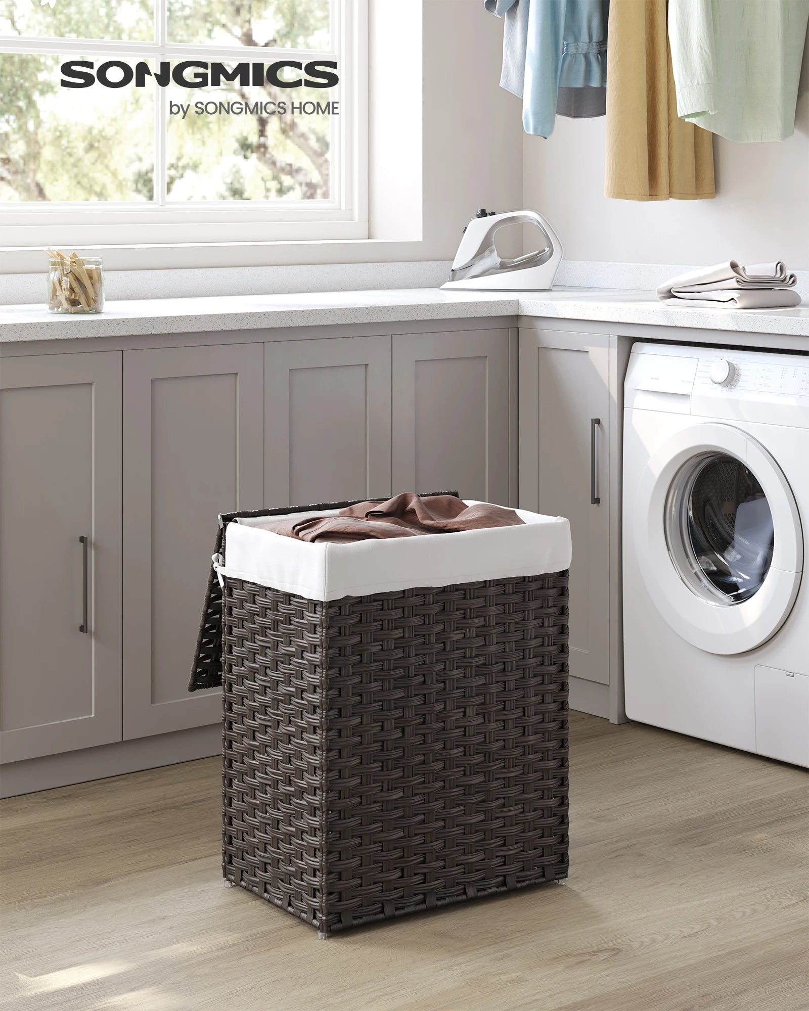 Songmics Laundry Hamper With Lid Synthetic Rattan Basket